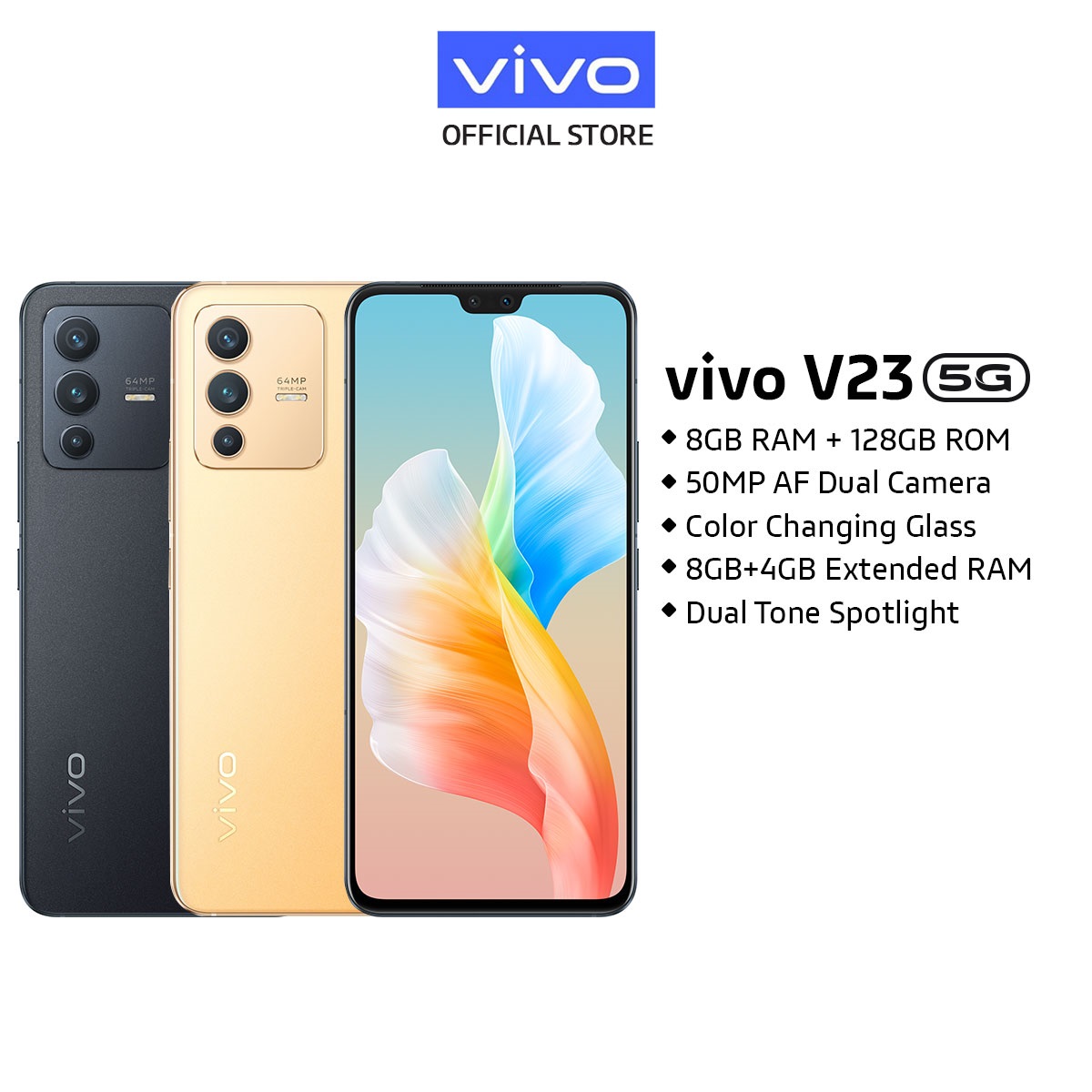 vivo V23 5G [8GB+4GB/128GB] 50MP AF Front Dual Camera | Colour Charging Glass | 7.39mm Simple Refinements | Dual Tone Spotlight | 105* Super Wide Angle Camera 【2 YEARS WARRANTY】