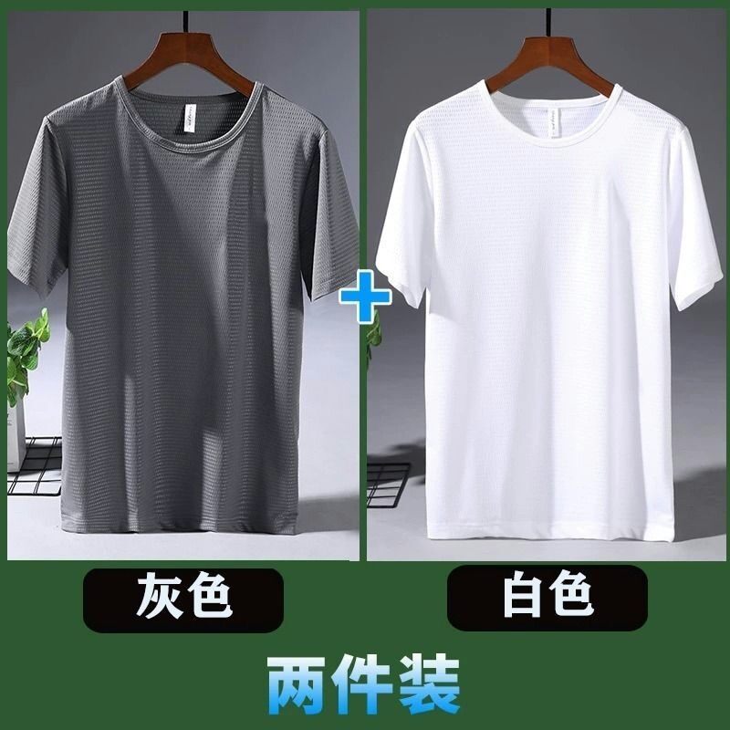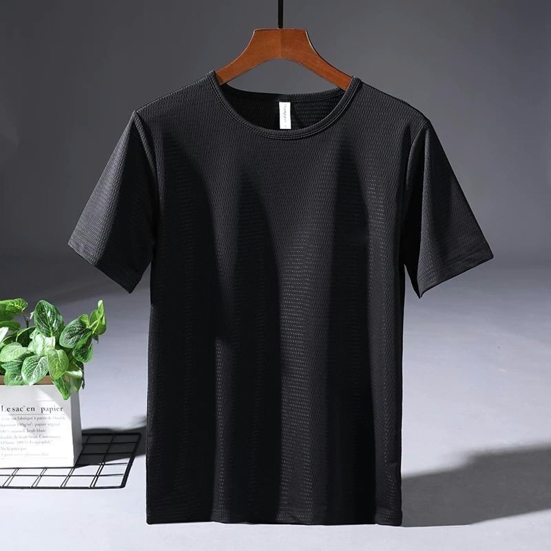 Large Size Ice Silk T-shirt Men's Mesh Short Sleeve Men's Loose Sports Quick-Drying Mesh Breathable Airable Shirt Summer Half Sleeve