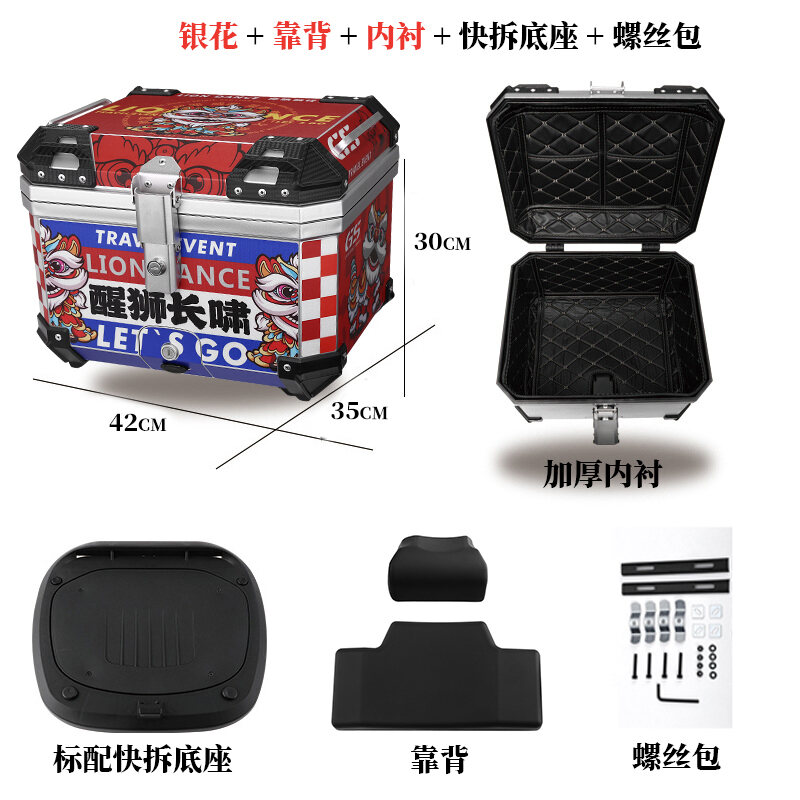 ABS Tail Box 45l Large Capacity Motorcycle Scooter Electric Vehicle Toolbox Quick Release Large Non-Aluminum Alloy Tail Box