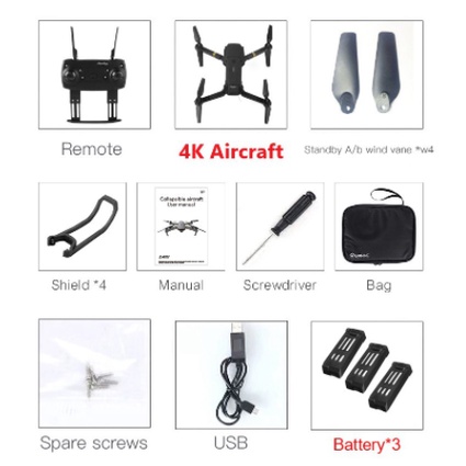 Function: Up/down, Forward/backward, Turn left/right, Sideward flight, 3-level flight speed, LED Light, Headless Mode, One Key Automatic Return, Altitude Hold Mode, WiFi FPV