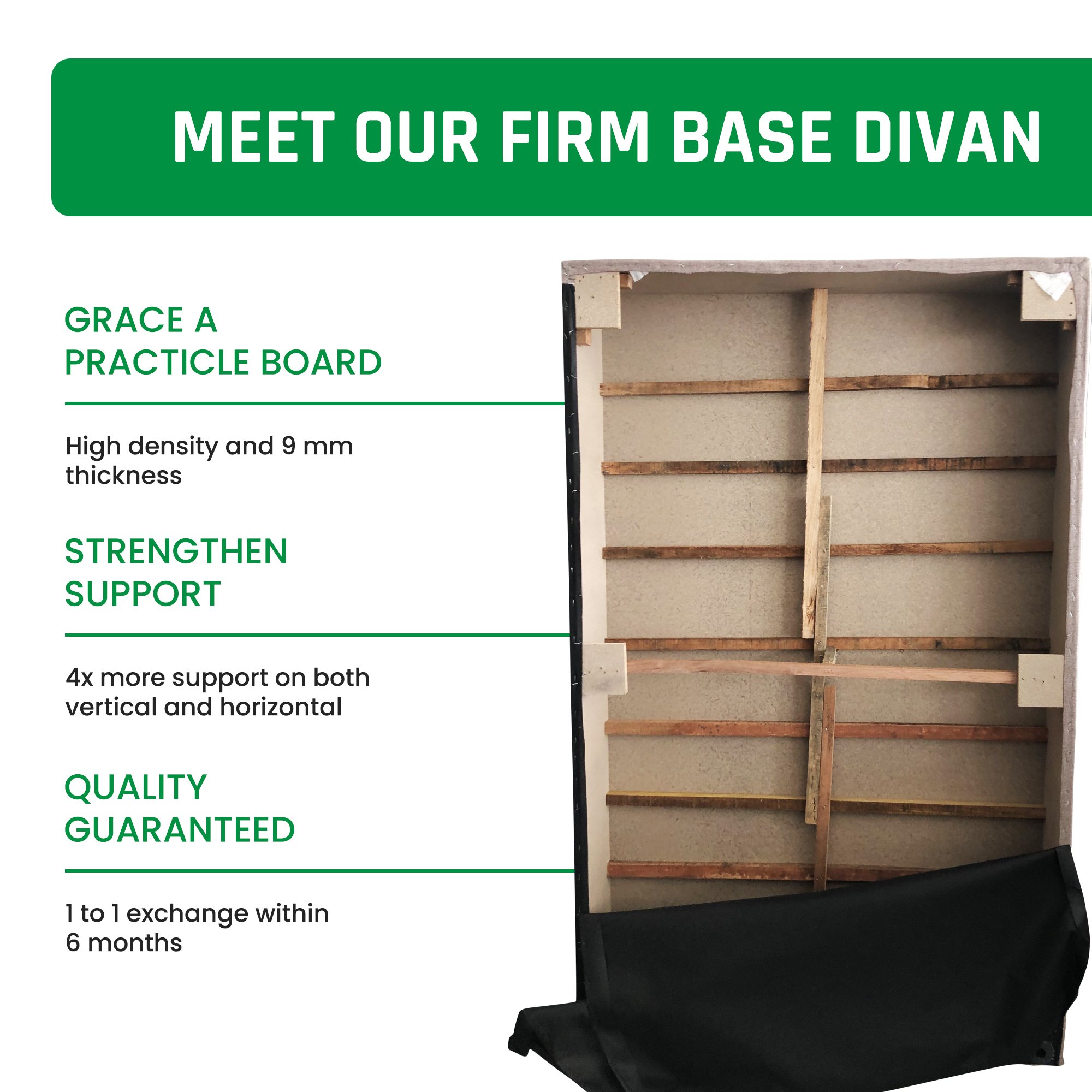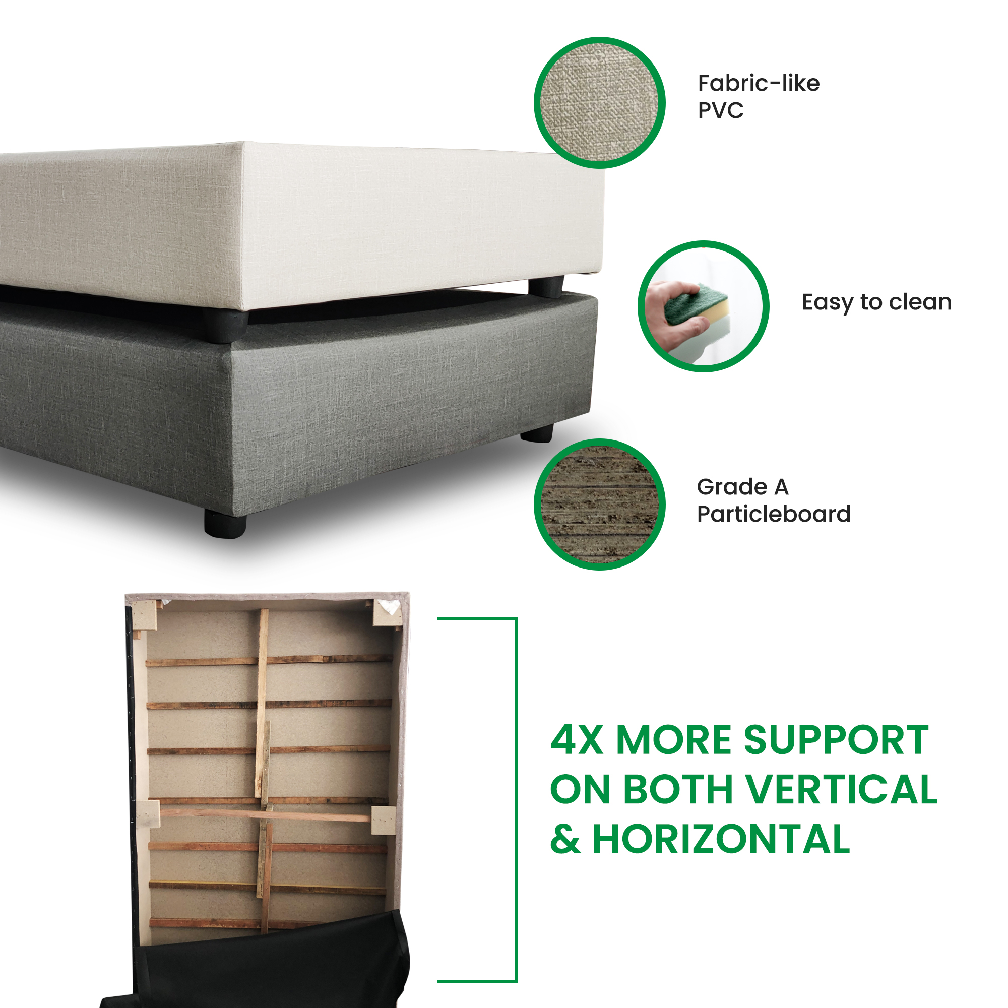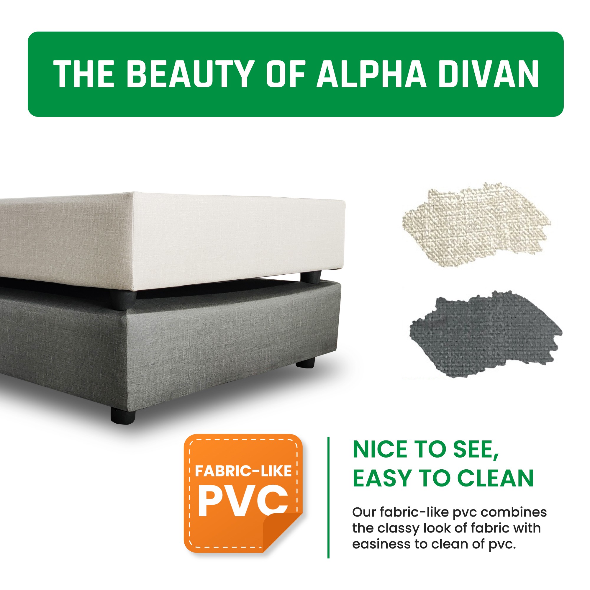 ALPHA Divan, Fabric-Like PVC, Easy to Clean Firm Base, Available Sizes (King, Queen, Super Single, Single)